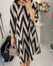SPECIFIKATIONER Stil: Enkel Material: Spandex, Polyester Klänningstyp: A-linje Klänning längd: Knälängd Urringning: Rund nacke Mönstertyp: Tryckt Typ av ärm: Tappad axel Ärmlängd: 3/4 ärm Passform typ: Vanlig Säsong: Vår, Höst, Vinter Tillfälle: Dagligen Paketet innehåller: 1 x Klänning STORLEKSTABELL(cm) Storlek Byst Längd S 95...
