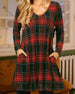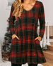 SPECIFIKATIONER Stil: Casual Material: Bomullsblandningar Klänningstyp: H-Line Klänning längd: Över knä Urringning: V-hals_V Mönstertyp: Pläd Typ av ärm: Vanlig ärm Ärmlängd: Långärmad Detaljer: Ficka Passform typ: Vanlig Säsong: Vår, Höst Tillfälle: Dagligen Förpackningen innehåller: 1 x Klänning STORLEKSTABELL(cm) Storlek Byst L...