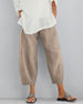 SPECIFIKATIONER Stil: Enkel Material: Bomull och linne Mönstertyp: Enfärgade Typ Byxor: Breda ben Byxlängd: Lång Midjetyp: Mitt midja Passform typ: Lös Säsong: Vår, Sommar, Höst Detaljer: Knappar Tillfälle: Dagligen Paketet innehåller: 1 x Byxor STORLEKSTABELL(cm) Storlek Längd Midjeomkrets Höft S 106 64 98 M 107 68 102 L 10...