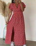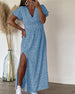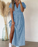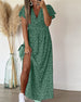 SPECIFIKATIONER Stil: Enkel Klänningstyp: A-linje Klänning längd: Maxi Urringning: V-hals_V Material: 5%Spandex, 95%Polyester Mönstertyp: Tryckt Typ av ärm: Volangärm Ärmlängd: Kortärmad Detaljer: Slits Passform typ: Vanlig Säsong: Vår, Sommar, Höst Tillfälle: Dagligen Paketet innehåller: 1 x Klänning STORLEKSTABELL(cm) Storlek ...
