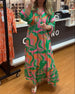 SPECIFIKATIONER Stil: Enkel, Semester Material: 95% Polyester, 5% Spandex Klänningstyp: A-linje Klänning längd: Maxi Urringning: V-hals_V Mönstertyp: Tryckt Typ av ärm: Flare ärm Ärmlängd: 3/4 ärm Passform typ: Vanlig Säsong: Vår, Sommar, Höst Tillfälle: Dagligen, Semester Paketet innehåller: 1 x Klänning STORLEKSTABELL(cm) Storlek By...