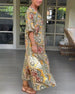 SPECIFIKATIONER Stil: Enkel Material: Bomullsblandningar Klänningstyp: Skiftklänning Klänning längd: Maxi Urringning: V-hals_V Mönstertyp: Löv, Tryckt Typ av ärm: Volangärm Ärmlängd: 3/4 ärm Passform typ: Lös Säsong: Vår, Sommar, Höst Tillfälle: Dagligen, Semester Paketet innehåller: 1 x Klänning STORLEKSTABELL(cm) Storlek Byst Län...