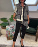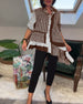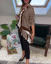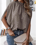 Moderiktig leopardmönstrad blus med V-ringad spets med patchwork