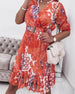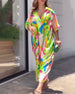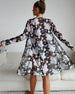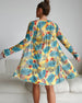 Mönstrad lös klänning med klocka och ärmar V-ringad