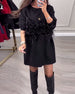 Moderiktig enfärgad klänning med paljett och fjäderpatchwork