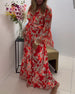 SPECIFIKATIONER Stil: Chic Material: Bomullsblandningar Klänningstyp: A-linje Klänning längd: Maxi Urringning: V-hals_V Mönstertyp: Tryckt Typ av ärm: Flare ärm Ärmlängd: 3/4 ärm Detaljer: Blandade Passform typ: Vanlig Säsong: Vår,Sommar Tillfälle: Dagligen Paketet innehåller: 1 x Klänning STORLEKSTABELL(cm) Storlek Byst Längd S 95 1...