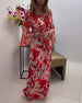 SPECIFIKATIONER Topptyp: Blusar Stil: Enkel Material: 100% Polyester Tillfälle: Dagligen Urringning: V-hals_V Mönstertyp: Enfärgade Typ av ärm: Fladdermushylsa Ärmlängd: Långärmad Byxlängd: Lång Passform typ: Lös Säsong: Vår, Sommar, Höst Detaljer: Dragsko Paketet innehåller: 1 x Blus, 1 x Byxor STORLEKSTABELL(cm) Storlek Byst B...