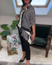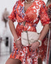 Moderiktig tryckt slimmad klänning med remmar och raglanärm