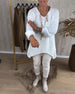 SPECIFIKATIONER Topptyp: Toppar Stil: Enkel Material: 70% Bomull, 30% Polyester Tillfälle: Dagligen Urringning: V-hals_V Mönstertyp: Brev Typ av ärm: Tappad axel Ärmlängd: Långärmad Passform typ: Vanlig Säsong: Vår, Sommar, Höst Detaljer: Ficka, Knappar Paketet innehåller: 1 x Topp STORLEKSTABELL(cm) Storlek Byst Före Efter Armlängd Axl...