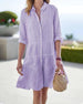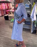 SPECIFIKATIONER Stil: Enkel, Kontor Material: Bomullsblandningar Klänningstyp: Skjorta Klänning längd: Midi Urringning: Slag Mönstertyp: Randig Typ av ärm: Vanlig ärm Ärmlängd: 3/4 ärm Detaljer: Ficka, Knappar Passform typ: Vanlig Säsong: Vår, Sommar, Höst Tillfälle: Dagligen, Arbete Paketet innehåller: 1 x Klänning STORLEKSTABELL(cm) Storle...
