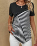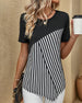 SPECIFIKATIONER Topptyp: Blusar Stil: Enkel Material: Bomullsblandningar Tillfälle: Dagligen Urringning: Rund nacke Mönstertyp: Randig,Färgblock Typ av ärm: Vanlig ärm Ärmlängd: Kortärmad Passform typ: Vanlig Säsong: Sommar Paketet innehåller: 1 x Blus STORLEKSTABELL(cm) Storlek Byst Längd S 95 68 M 100 69.5 L 105 71 XL 111 72.5 2X...