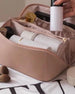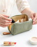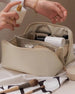 Stor lagringskapacitet för all kosmetika du vill ha med dig på resan, och en delikat resa. Enkel och stor öppningsdesign, lätt att ta.Dubbellagers molnväska i krämigt läder som är mjukt och premium som ett moln.Linje snyggt, ignorera inte varje detalj. FUNKTIONER Designväska med stor kapacitet -- Vid öppningen av sminkväskan sätts en stål...