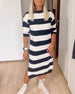SPECIFIKATIONER Stil: Enkel Material: Bomullsblandningar Klänning längd: Midi Urringning: Rund nacke Mönstertyp: Randig Typ av ärm: Vanlig ärm Ärmlängd: 3/4 ärm Passform typ: Vanlig Säsong: Vår, Höst Tillfälle: Dagligen Paketet innehåller: 1 x Klänning STORLEKSTABELL(cm) Storlek Byst Längd S 95 120 M 100 121.5 L 105 123 XL...