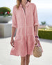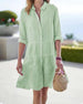 SPECIFIKATIONER Stil: Enkel Material: Bomullsblandningar Klänningstyp: Skjorta Klänning längd: Över knä Urringning: Ståkrage Mönstertyp: Enfärgade Typ av ärm: Raglan ärm Ärmlängd: Långärmad Detaljer: Ficka, Knappar Passform typ: Lös Säsong: Vår, Sommar, Höst Tillfälle: Dagligen Paketet innehåller: 1 x Klänning STORLEKSTABELL(cm) S...