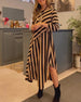 SPECIFIKATIONER Kategori: Tröjor Stil: Enkel Material: 100% Polyester Urringning: Ståkrage Mönstertyp: Randig Typ av ärm: Tappad axel Ärmlängd: Långärmad Detaljer: Slits Passform typ: Vanlig Tillfälle: Dagligen Säsong: Vår, Höst, Vinter Paketet innehåller: 1 x Tröja STORLEKSTABELL(cm) Storlek Byst Längd Armlängd S 102 72 50 M...