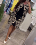 Retrotryckt lös klänning med V-ringning och kort ärm