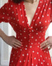 SPECIFIKATIONER Stil: Elegant Material: Bomullsblandningar Klänningstyp: A-linje Klänning längd: Maxi Urringning: V-hals_V Mönstertyp: Polka prickig Typ av ärm: Vanlig ärm Ärmlängd: Kortärmad Detaljer: Slits Passform typ: Vanlig Säsong: Vår, Sommar, Höst Tillfälle: Dagligen Paketet innehåller: 1 x Klänning STORLEKSTABELL(cm) Storle...