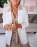 SPECIFIKATIONER Topptyp: Skjorta Stil: Enkel, Elegant Material: Bomullsblandningar Tillfälle: Dagligen, Semester Urringning: V-hals_V Mönstertyp: Tryckt Typ av ärm: Tappad axel Ärmlängd: 3/4 ärm Passform typ: Vanlig Säsong: Vår, Sommar Paketet innehåller: 1 x Skjorta STORLEKSTABELL(cm) Storlek Byst Längd S 95 68 M 100 69.5 L 105 71 X...