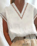 SPECIFIKATIONER Topptyp: Toppar Stil: Elegant, Kontor Material: Bomullsblandningar, Spets Tillfälle: Dagligen, Arbete Urringning: V-hals_V Mönstertyp: Enfärgade Typ av ärm: Vanlig ärm Ärmlängd: Kortärmad Passform typ: Vanlig Säsong: Vår, Sommar, Höst Detaljer: Lappverk Paketet innehåller: 1 x Topp STORLEKSTABELL(cm) Storlek Byst Längd S 95...