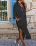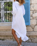 SPECIFIKATIONER Stil: Enkel, Semester Material: Bomull Klänningstyp: Skjorta Klänning längd: Midi Urringning: Slag Mönstertyp: Enfärgade Typ av ärm: Tappad axel Ärmlängd: Långärmad Detaljer: Ficka, Knappar Passform typ: Lös Säsong: Vår, Sommar, Höst Tillfälle: Dagligen, Semester Paketet innehåller: 1 x Klänning STORLEKSTABELL(cm) S...