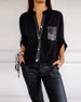 FUNKTIONER Lätt och bekvämt material: Tillverkat av ett lätt tyg som erbjuder utmärkt andningsförmåga, vilket säkerställer komfort under alla årstider. Snygg liten V-ringad design: Har en liten V-ringad design som förbättrar den övergripande stilen samtidigt som den behåller en avslappnad look. Pocketdetaljer med paljetter: Bröstfickan är ...