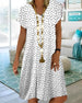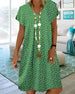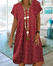 Avslappnad v-ringad kort ärmad klänning i hjärttryck