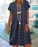 SPECIFIKATIONER Stil: Enkel Klänningstyp: Skiftklänning Klänning längd: Knälängd Urringning: V-hals_V Mönstertyp: Tryckt, Hjärta Typ av ärm: Vanlig ärm Ärmlängd: Kortärmad Passform typ: Lös Material: Polyester Säsong: Vår, Sommar, Höst Tillfälle: Dagligen Paketet innehåller: 1 x Klänning STORLEKSTABELL(cm) Storlek Byst Längd Arml...