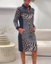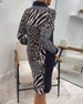 Snygg klänning i leopardmönstrad patchwork med dragkedja