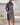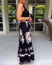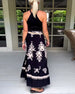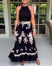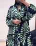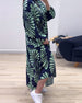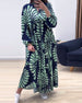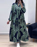Ståkragetryckt lång klänning med lång ärm och patchwork