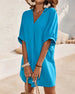 SPECIFIKATIONER Stil: Enkel Material: Bomullsblandningar Klänningstyp: Skiftklänning Klänning längd: Knälängd Urringning: V-hals Mönstertyp: Enfärgade Typ av ärm: Vanlig ärm Ärmlängd: Halvärm Passform typ: Vanlig Säsong: Vår, Sommar Tillfälle: Dagligen Paketet innehåller: 1 x Klänning STORLEKSTABELL(cm) Storlek Byst Längd S 95 100 M...