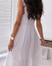 EGENSKAPER: Kategori: Klänning Stil: Boho, Semester, Elegant Material: Bomull Halsringning: V-ringad Ärmtyp: Ärmlös Längd: Knälång Mönstertyp: Enfärgad Tillfälle: Semester Detaljer: Broderi, Spetsinlägg Passform: Vanlig Säsong: Vår, sommar Paketet innehåller: 1 * Klänning STORLEKSTABELL(cm) Storlek Byst Midjeomkrets Längd S 95 82...