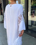 SPECIFIKATIONER Stil: Elegant Material: Bomull, Spets Klänningstyp: Skiftklänning Klänning längd: Midi Urringning: Rund nacke Mönstertyp: Enfärgade Typ av ärm: Volangärm Ärmlängd: Långärmad Detaljer: Lappverk, Spets Passform typ: Lös Säsong: Vår, Sommar, Höst Tillfälle: Dagligen Paketet innehåller: 1 x Klänning STORLEKSTABELL(cm) S...