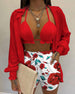 SPECIFIKATIONER Stil: Semester, Sexig Material: Spandex, Polyester Tillfälle: Semester Mönstertyp: Tryckt Typ av ärm: Vanlig ärm Ärmlängd: Långärmad Linnetyp: Bikini, Cover up BH typ: Trådlös BH Nedre typ: Högt snitt Passform typ: Vanlig Säsong: Sommar Paketet innehåller: 1 x Bikini, Cover up STORLEKSTABELL(cm) Storlek Byst Midjeomkrets...
