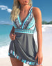 SPECIFIKATIONER Stil: Enkel, Semester, Boho Material: Spandex, Polyester Tillfälle: Semester Urringning: V-hals_V Mönstertyp: Tryckt Ärmlängd: Ärmlös Linnetyp: Baddräkt BH typ: Trådlös BH Passform typ: Vanlig Säsong: Sommar Paketet innehåller: 1 x Baddräkt, 1 x Nederdel STORLEKSTABELL(cm) Storlek Byst Midjeomkrets Höft Under byst S 88...