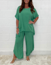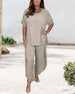 SPECIFIKATIONER Topptyp: Blusar Stil: Enkel Material: Bomullsblandningar Tillfälle: Dagligen Urringning: Rund nacke Mönstertyp: Enfärgade Typ av ärm: Vanlig ärm Ärmlängd: Kortärmad Byxlängd: Lång Passform typ: Lös Säsong: Vår, Sommar, Höst Detaljer: Slits Paketet innehåller: 1 x Blus, 1 x Byxor STORLEKSTABELL(cm) Storlek Byst Bl...