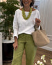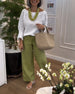 V-ringad avslappnad långärmad blus i kontrastfärg