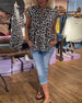Moderiktig leopardmönstrad blus med V-ringad spets med patchwork