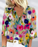 Färgglad blommig blus med V-ringning och trekvartsärm