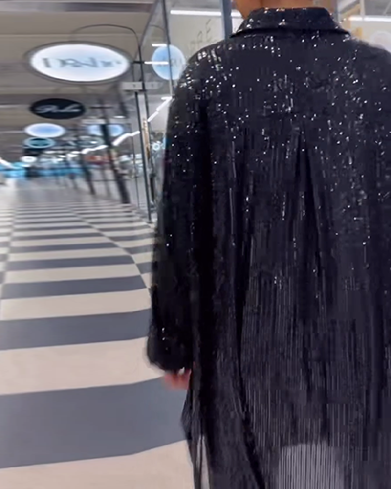 Casual skjorta med paljetter med slits