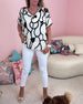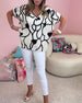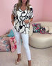 V-ringad avslappnad blus med tryck