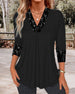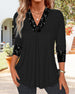 SPECIFIKATIONER Topptyp: Blusar Stil: Elegant Material: Bomullsblandningar,Spets Tillfälle: Dagligen Urringning: V-hals_V Mönstertyp: Enfärgade Typ av ärm: Vanlig ärm Ärmlängd: 3/4 ärm Passform typ: Vanlig Säsong: Vår,Sommar,Höst Paketet innehåller: 1 x Blus STORLEKSTABELL(cm) Storlek Byst Längd S 95 65 M 100 66.5 L 105 68 XL 111 69....