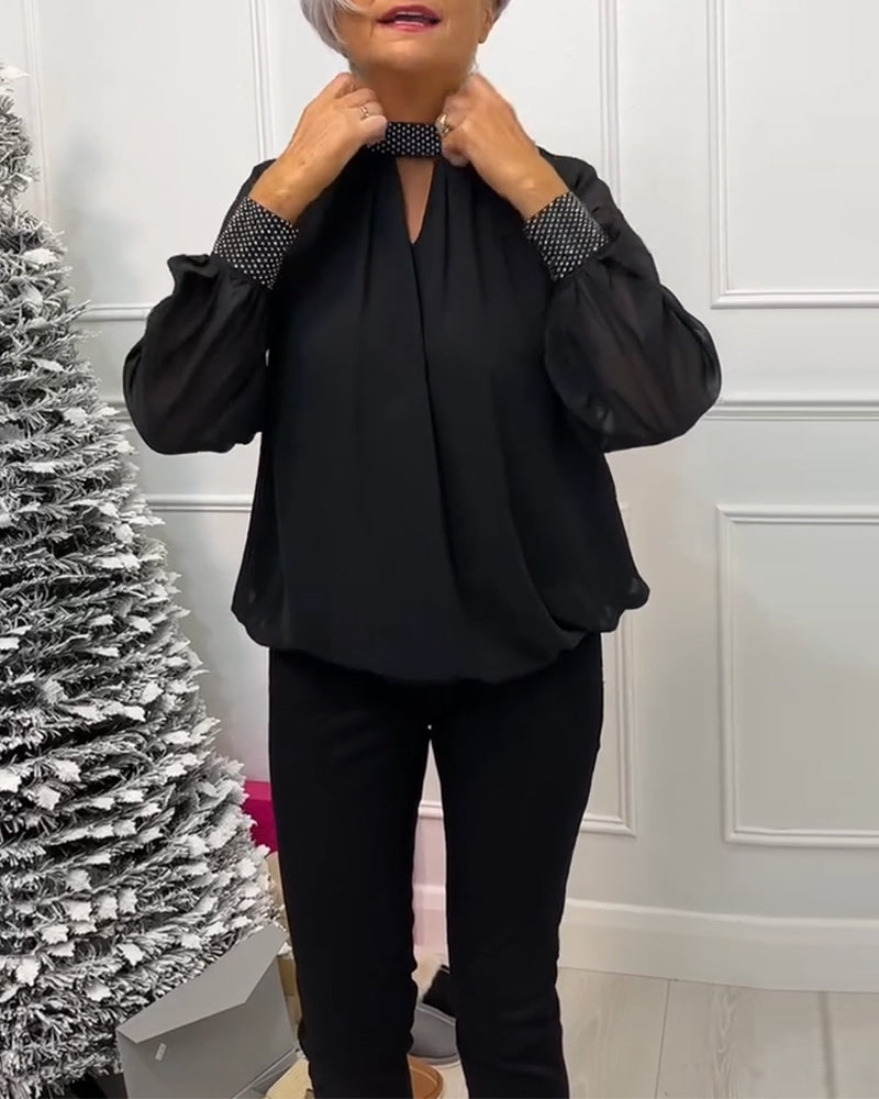 V-ringad plisserad elegant topp med paljetter