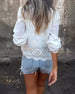 V-ringad blus i enfärgad spets temperament