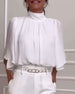 Enfärgad blus med hög krage med fjärilsärm