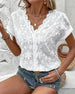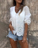Blus Med V-hals, Knäppt Och Spetsig Genomskinning Design