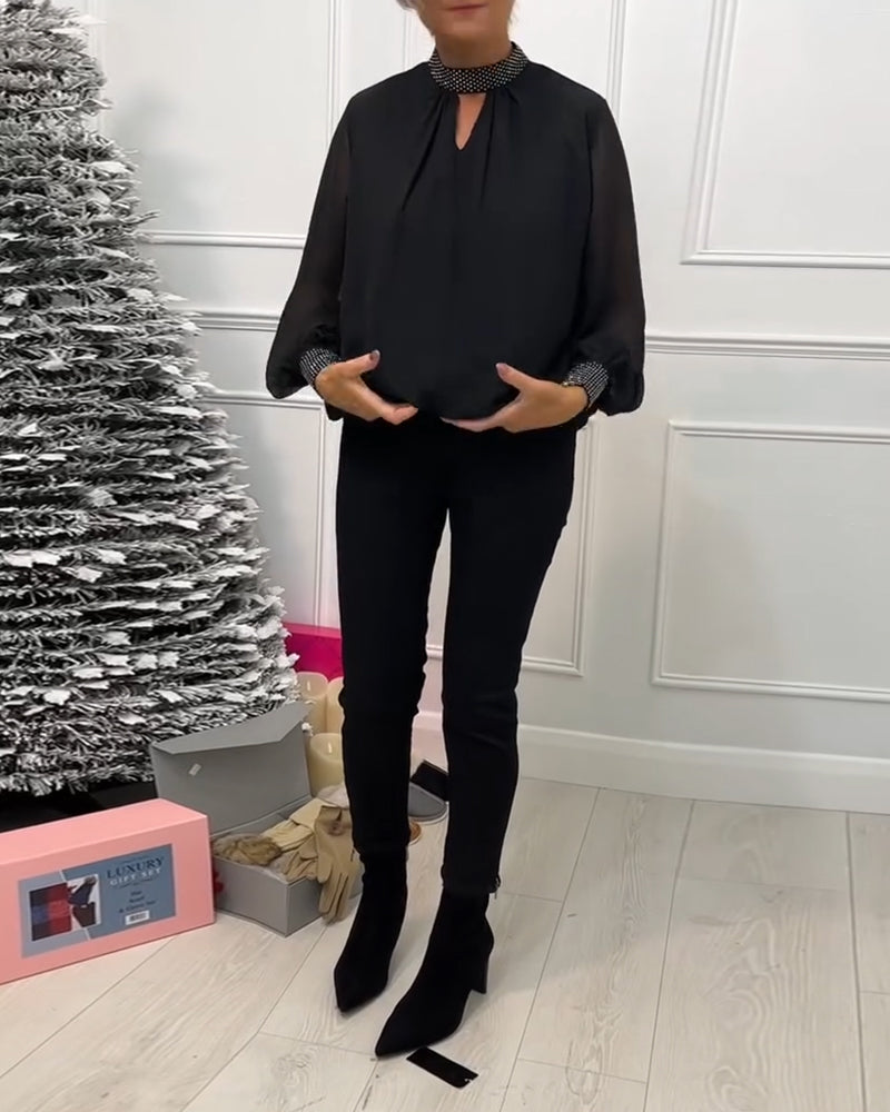 Elegant enfärgad blus med V-ringad lyktaärm