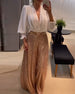 Topp sexig v-ringad mesh och enfärgad paljett