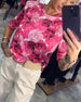 Avslappnad huvblus med blommönster och kortärmad