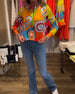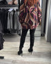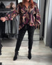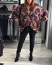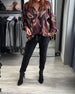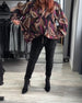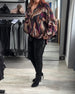 Färgglad tryckt V-ringad långärmad blus