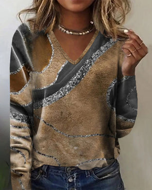 Blus med V-ringning och tryck